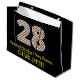 This fun and simple Christmas themed and birthday themed December 25th birthday gift bag design features a large number "28" with a green, white, and red stripes pattern, along with the message "Happy 28th Birthday & Merry Christmas,", and a personalised name. The background is coloured black. A gift bag like this might be used when wrapping gifts or presents that are being given to somebody whose twenty eighth birthday falls on December 25th (Christmas Day). [~Z0000407]