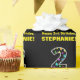 This fun birthday-themed wrapping paper design features a large number "2", filled with a pattern of star shapes having various sizes and colours. It also features the message "Happy 2nd Birthday,", and a personalised name. The background is coloured black. Birthday themed wrapping paper like this might be a fun way to wrap a gift or present being given to celebrate somebody’s second birthday. [~Z0000429]