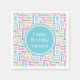 Happy birthday napkins in a colourful word pattern.  Easily add your name to the centre