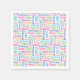 Happy birthday napkins in a colourful word pattern.