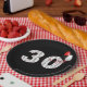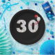 30th birthday party with bold black and white happy and 30 text on black with party balloon bouquet.