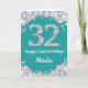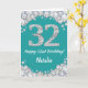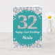 Happy 32nd Birthday Teal and Silver Glitter Card