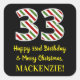 Happy 33rd Birthday & Merry Christmas, Custom Name Square Sticker