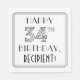 This stylish Roaring Twenties era inspired art deco style birthday themed paper napkin design features the message “HAPPY 34TH BIRTHDAY,”, plus a personalised recipient name. The number “34TH” has a fancy geometric lined look, and there is also a lined border around the birthday greeting message. Paper napkins like these might be used at a party held in celebration of somebody’s thirty-fourth birthday. [~Z0000644]