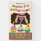 Celebrate the birthday of your adorable three-year-old child with this colourful design: three yummy cupcakes with candles and cherries, brightly coloured birthday bunting and matching photo frame for your child’s latest portrait, over a cute polka dot background. Replace the sample photo and text with your own for a personalised gift.