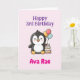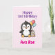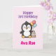 Happy 3rd Birthday, Cute Penguin, Personalized Card