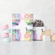 Pink third birthday. Nice to give as a gift to someone who has become three years old. Happy design with rainbow colors.