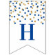 Happy 40th Birthday banner with dark blue and gold confetti pattern. Can be customised for any age.