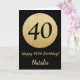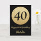 Happy 40th Birthday Black and Gold Glitter Card with personalized name. For further customization, please click the "Customize it" button and use our design tool to modify this template.