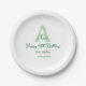 Happy 40th birthday green add name monogram modern paper plate