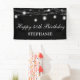This 40th happy birthday banner features lights and hanging mason jars on a black background. Personalise it with a name.