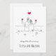 Middle aged Wife and Husband are sitting on the sea shore holding glasses of wine in their hands. They are watching the sunset, and the sun takes the shape of a shining heart for this happy moment of their 40th wedding anniversary. Design of the card is made in very simple pen and ink cartoony technique with the three red spots: heart and two wine glasses. Great Card for the Ruby Wedding Anniversary! You can easily personnalise the text (greeting and names) at the lower part of the card using Zazzle personalization tools.