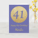 Happy 41st Birthday and Gold Glitter Card with personalised name. For further customisation, please click the "Customise it" button and use our design tool to modify this template.