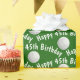 Happy 45th birthday message on green with white golf balls.