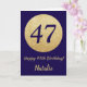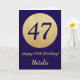 Happy 47th Birthday Navy Blue and Gold Glitter Card with personalized name. For further customization, please click the "Customize it" button and use our design tool to modify this template.
