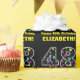 This fun birthday-themed wrapping paper design features a large number "48", filled with a pattern of star shapes of various colours and sizes. It also features the message "Happy 48th Birthday,", and a personalised name. The background is coloured black. Fun wrapping paper like this might be used when wrapping presents being given to somebody in celebration of their 48th birthday. [~Z0000429]