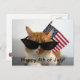 Celebrate the 4th of July with this cool postcard from my "Kitty Koolness" Collection, featuring an orange and white cat wearing black shades with an American Flag behind her. Photo by designer.