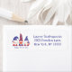 Cute illustration of garden gnomes in the theme of red, white, and blue for the Fourth of July. Equipped with an American flag, firework rocket, and cute heart.