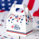 This bright favour box features a fun Independence Day design of decorative red, white and blue stars in a graceful arc over beautiful calligraphy that reads 'Happy 4th of July'. Perfect for those tail gate parties and barbecues as you celebrate the occasion. Search ID1103 to see all the coordinating products with this cheerful design.