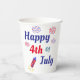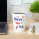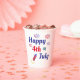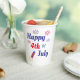 Stylish patriotic Fourth of July holiday custom mason jar design features an "Happy 4th of July" quote script typography text design in red, blue, and navy blue colours with celebratory fireworks