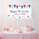 Custom Happy 4th of July party banner with colourful bunting flags garland. Add your own name or welcome home text. Cheerful design with elegant typography template. Perfect for family reunion, welcome home parties, gatherings and other celebrations. Personalised decorations for festive party.