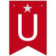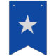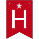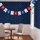 A red white and blue bunting banner with letters on each flag that read: HAPPY 4TH OF JULY