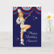 Happy Birthday, America. 4th of July customisable Greeting Card with a 1950s retro pin-up magazine illustration. Artist : Al Buell. Matching cards, favours and gifts available in the Holidays | 4th of July Category of our store.