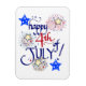 Design saying "Happy 4th of July!" with stars and fireworks all around.