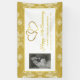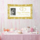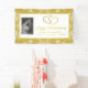 HAPPY ANNIVERSARY EVENT BANNER - FAUX GOLD FOIL: Two festive linked hearts in faux gold foil with golden champagne bubbles pattern background and your custom text. Fully customisable for your anniversary celebration, wedding, engagement, or Valentine's Day event.