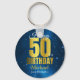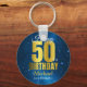 A gorgeous blue and gold effect 50th birthday keychain. This space themed design is the perfect way to wish someone a 'happy 50th birthday'. Personalize with our own custom name and message. Gold and white typography on a universe background.