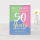 Celebrate a birthday with a personalised card showing recipient's name, number of years, and date. Add a message inside too. Birthday Card for a 50 year old.