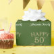 Happy 50th Birthday Gold Glitter and Green Wrapping Paper with personalised name. For further customisation, please click the "Customise it" button and use our design tool to modify this template.