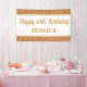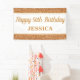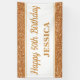 This happy birthday banner features faux gold glitter. Personalise it with a name.