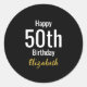 Happy 50th Birthday with Name Gold Black and White Classic Round Sticker