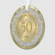 Celebrate your 50th wedding anniversary in style with this exquisite white and gold double heart adorned with stunning faux diamonds. A symbol of enduring love and commitment, this elegant piece is the perfect way to mark this milestone occasion.