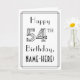 The front of this stylish 1920s-1930s art deco inspired birthday themed greeting card design has the message “Happy 54th Birthday,” and a customisable recipient name. The number “54th” on the front has a fancy lined look, and there is also a lined border. The inside features a customisable birthday greeting message, or could perhaps be cleared and left blank if a message is to be written by hand instead. An elegant, customisable birthday greeting card like this might be a fun way to send some birthday wishes to somebody who is celebrating their fifty-fourth birthday. [~Z0000641]