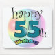Gelukkige 55ste verjaardag muismat Leuk als cadeau voor iemand die vijfenvijftig is geworden. Regenboog kleuren. 55 is in de blauwe kleur.
