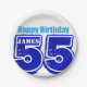 Electric Blue turquoise "Happy Birthday" in relief (not customisable) + first name and large blue 55 to customise. Design on paper plate with white background. Matching paper napkin and more...