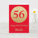 Happy 56th Birthday Red and Gold Glitter Card with personalized name. For further customization, please click the "Customize it" button and use our design tool to modify this template.
