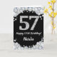 Happy 57th Birthday Black and Silver Glitter Card
