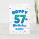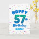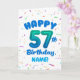 Celebrate their 57th birthday with a bright, cheerful, and personalizable birthday card! This custom name birthday card features a bold number fifty-seven balloon and colorful confetti.