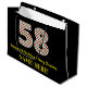 This simple and fun Christmas-themed and birthday-themed December 25th birthday gift bag design features a large number "58" with a red, white, and green stripes pattern, along with the message "Happy 58th Birthday & Merry Christmas,", and a personalised name. The background is coloured black. A gift bag like this might be used when wrapping gifts or presents that are being given to somebody whose fifty eighth birthday falls on December 25th (Christmas Day). [~Z0000407]