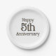 These plates feature the words "Happy 5th Anniversary" in a unique print font with gold letters black outline. Plates come in a set of eight and is printed on durable paper stock great for serving cake, appetizers, or salads. All plates are FDA approved for food contact and safety fully biodegradable and printed with vegetable-based inks printed in USA.