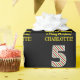 This fun and simple Christmas themed and birthday themed December 25th birthday wrapping paper design features a large number "5" with a green, white, and red stripes pattern, along with the message "Happy 5th Birthday & Merry Christmas,", and a personalised name. The background is coloured black. Wrapping paper like this might be fun to use when wrapping presents that are being given to somebody whose fifth birthday falls on December 25th (Christmas Day). [~Z0000406]