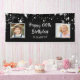 Celebrate the one who's turning 60 and welcome party guests with this black and silver star themed banner sign with two photos and a handwritten brush script font.