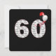 Birthday party invite with bold black and white happy 60 text on black with party balloon bouquet