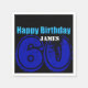 Blue turquoise "Happy Birthday" in relief (not customisable) + first name and large 60 to customise. Design on paper napkin with black background. Matching paper plate and more...
