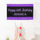 This 60th happy birthday banner features faux purple glitter. Personalise it with a name.
