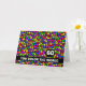 Happy 60th Birthday paper greeting card with bright and colourful world globe shapes which resembles a quilt. Various bright colours outlined in black. Art, image, and verse © Shoaff Ballanger Studios, 2021.