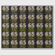 This fun and simple Christmas themed and birthday themed December 25th birthday wrapping paper design features a large number "65", with a red, white, and green stripes pattern. It also features the message "Happy 65th Birthday & Merry Christmas,", and a personalised name. The background is coloured black. Wrapping paper like this might be a fun way to wrap presents that are being given to somebody who was born on December 25th (Christmas Day) and who is celebrating their sixty fifth birthday. [~Z0000406]